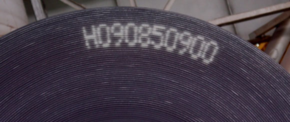 三鋼閩光煉鋼廠板坯連鑄線上,一種機器正忙碌地給每塊紅坯打上以數(shù)字和字母組成的身份標識。這種機器就是板坯自動噴號機。